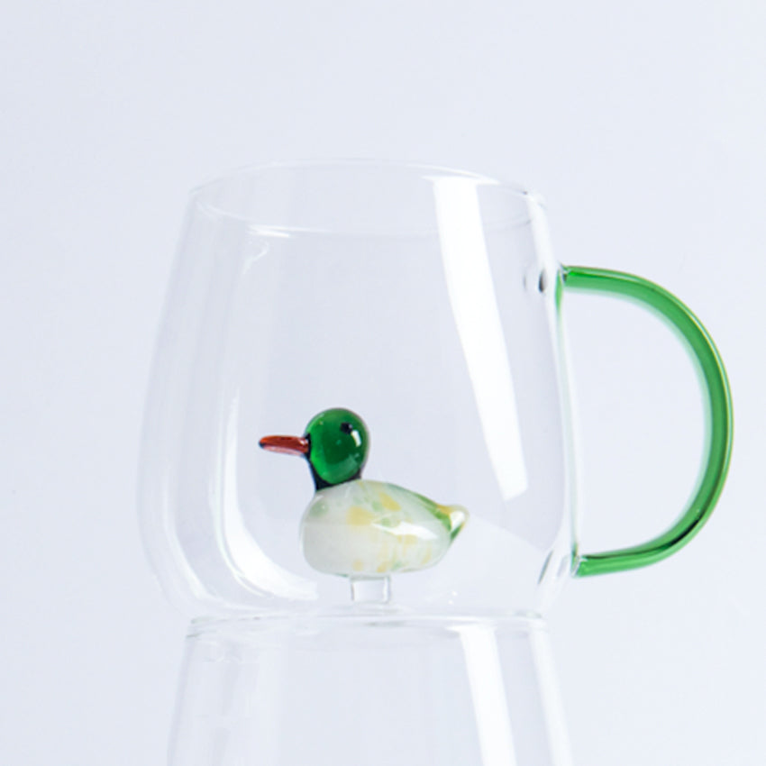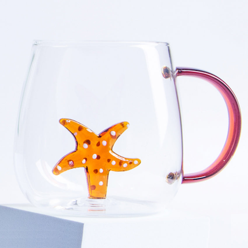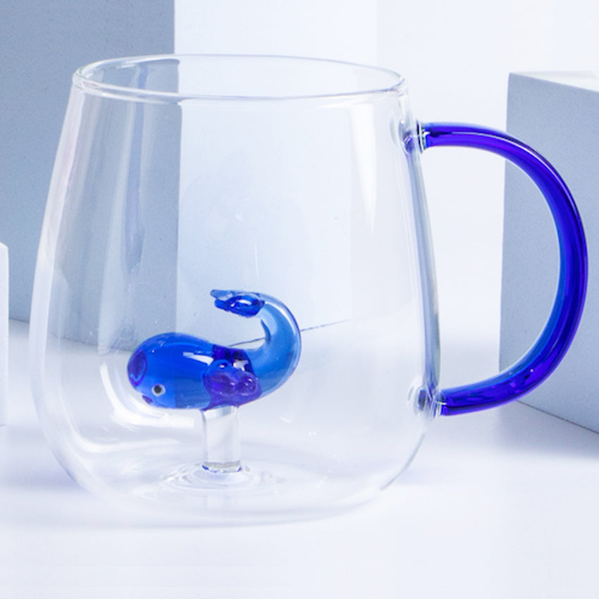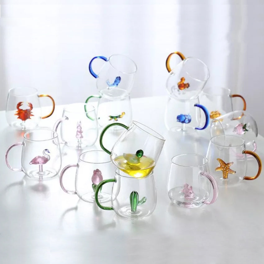 Handcrafted in 3D borosilicate colored glass, these functional and stylish double-walled mugs are functional and aesthetically pleasing.