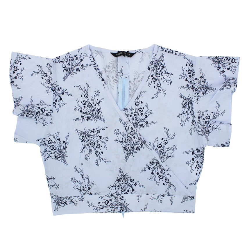 Megan ladies printed ruffled top ( blue )